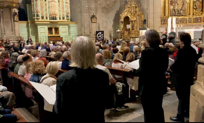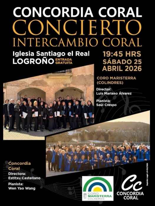 Anoche tuvimos el placer de disfrutar de otro concierto en la iglesia, en esta ocasión con la participación de dos coros: Concordia Coral (el coro que se fundó en 2021, aquí mismo, en nuestra parroquia, y que sigue ensayando semanalmente en la casa parroquial, preparándose para conciertos por todas partes) y el coro invitado Coro Maristerra, de Colindres, en Cantabria.